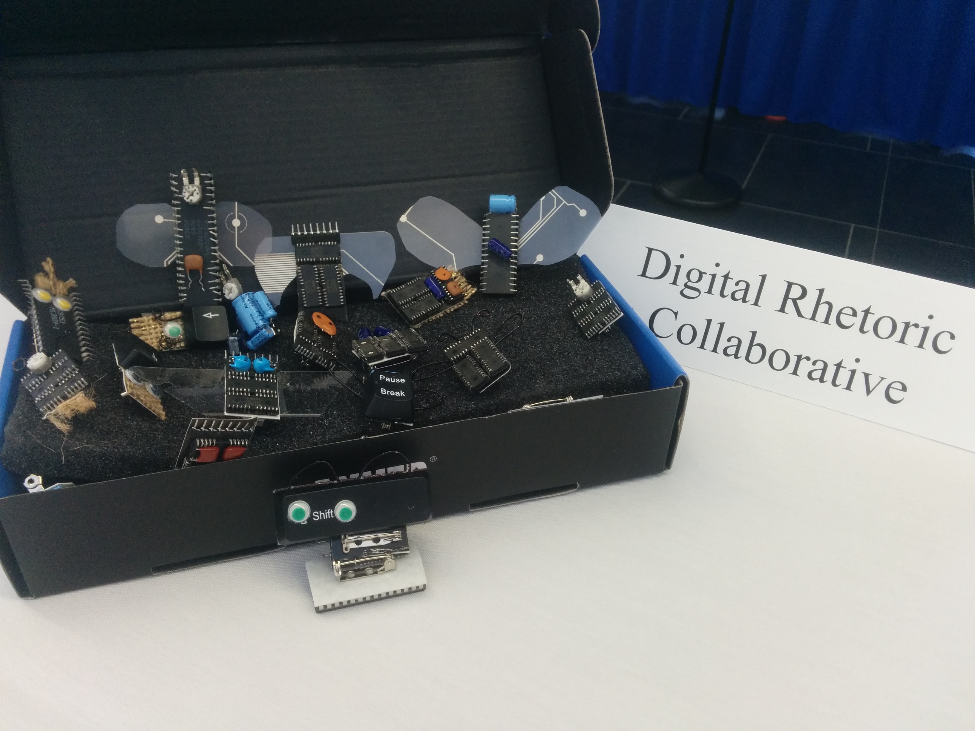 To recognize successful wiki quest completions, we upcycled technology as giveaways, such as our “computer bugs” made of computer keys and memory chips as rewards for completion of an early series of quests. Other tangible prizes included a floppy disk pen holder, computer part key chains, and books.